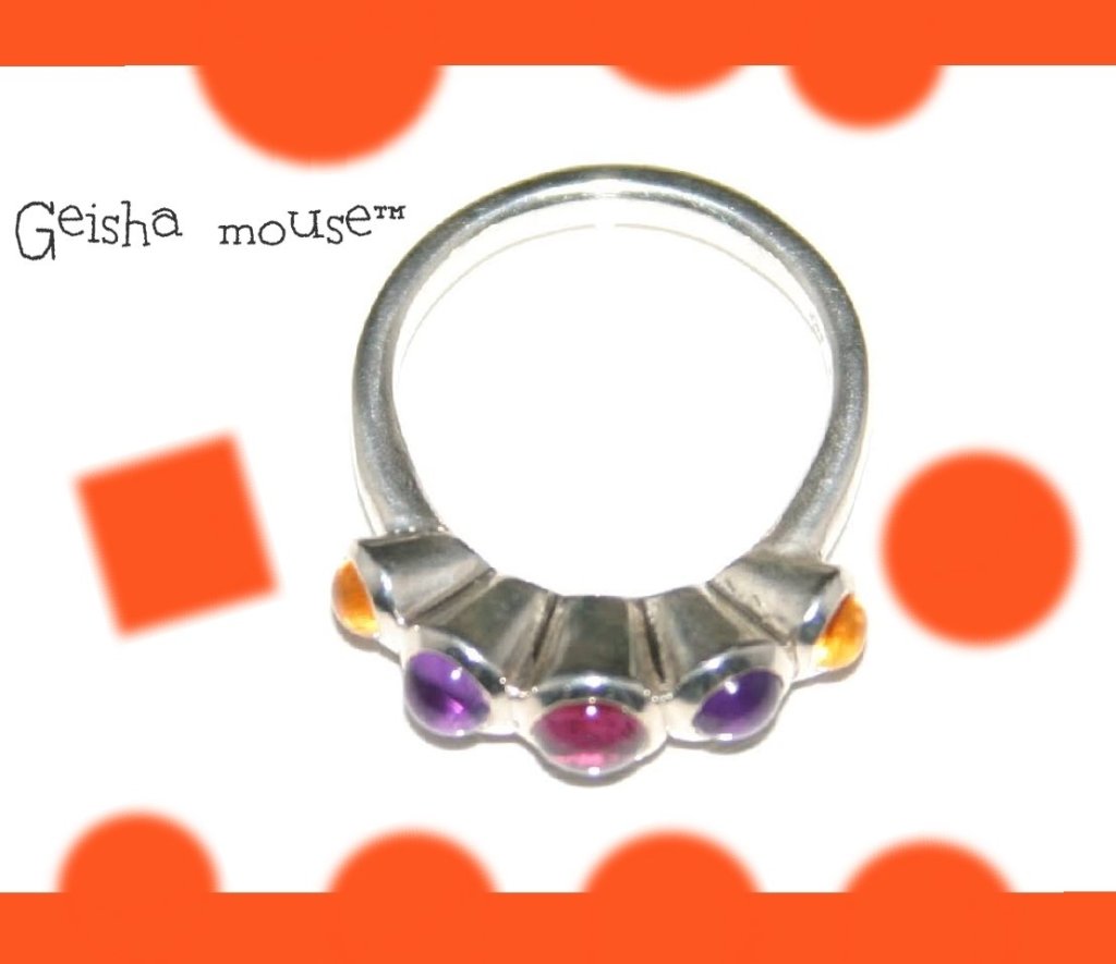 Bijou: Rhodolite Garnet ×1. 4.5mm Amethyst ×2. 3.5mm Citrine ×2. 3mm Align cabochons